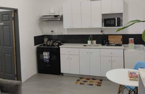 A compact space for a great night's sleep, a kitchen you can slave in or cook up quick meals, comfy couch for date night and a movie and the best hot water power shower you've have had in a while. All in the best location in Port of Spain, walking distance to tons of amenities.