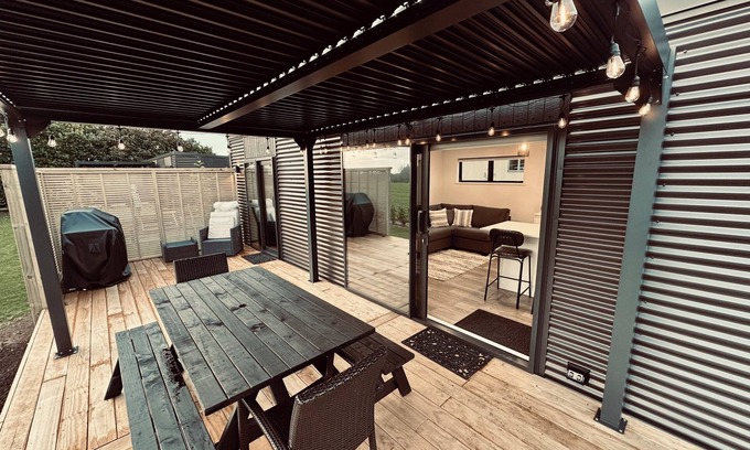 The Pūkeko Cabin at Heaven’s Rest B&B offers a quiet, self-contained stay with a spacious bedroom and ensuite bathroom. The open-plan living area includes a lounge and fully equipped kitchen, opening onto a large furnished deck with countryside views. A second bedroom with its own ensuite is available on request for an additional charge. Located 10 minutes from Pukekohe and 30 minutes from Auckland Airport.