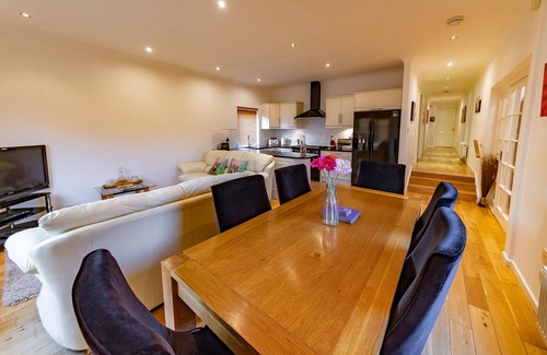 Open plan living, cooking and dining area with large range cooker, American style fridge freezer, Solid oak flooring, Granite work tops, Oak dining table, Extensively equipped kitchen including Dolce Gusto Coffee maker, Televisions in all rooms (including main bathroom) with Sky package including sky sports. Unlimited Wifi, Storage area for sports equipment, walking or beach clothing, Hairdryer with shaver socket, Burglar alarm and safety deposit boxes for peace of mind, Egyptian cotton linen and towels. Bus stop at end of road to take you into North Berwick or Edinburgh if required. Owners on 24 hour call for assistance if required.