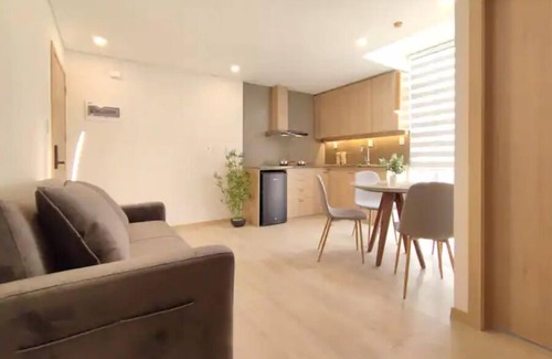 Apartments of modern and avant-garde design connected to each other, with total independence, equipped with sofa bed, kitchen, kitchenware, dining room, microwave, mini fridge, wifi.