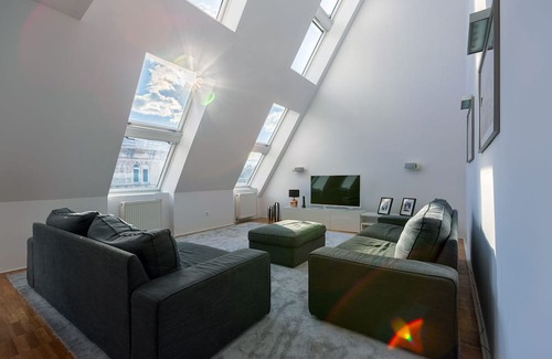 Modern Penthouse with Private Terrace Hot Tube is located in Ujlipotvaros. Modern Penthouse with Private Terrace Hot Tube provides accommodation, featuring Air Conditioner, Bedding/Linens, Child Friendly, among other amenities. This Apartment features Air Conditioner, Bedding/Linens, Child Friendly, to make your stay a comfortable one.