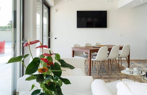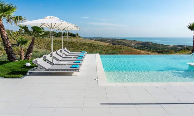 Villa Mazara, a modern villa with private swimming pool, has been renovated in 2020 and is located in the Sciacca area, near Agrigento. With a well-kept Mediterranean garden, splendid panoramic views, and large, well equipped terraces the villa is an excellent base for exploring the amazing surrounding area: the beaches of Seccagrande and Eraclea Minoa, the nature reserves of Foce del Fiume Platani and Torre Salsa, the spectacular Realmonte's Scala dei Turchi, the enchanting Valley of the Temples, Sciacca, Selinunte, Mazara del Vallo, Trapani and Marsala are a short drive away. The villa is also just 15 minutes drive from a famous 5\* Golf Resort.