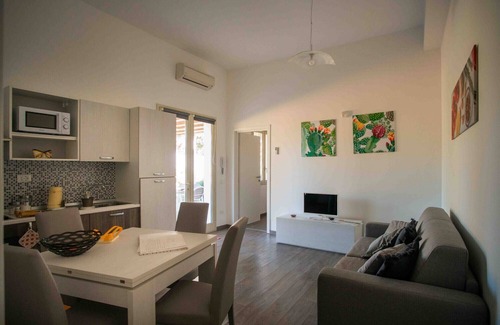 The villa is composed of 3 separate but adjacent apartments, each with their own entrance and each offering a nice terrace equipped with table and chairs where to have your meals, a living room with equipped kitchen, brand new equipment and high-quality furniture to ensure the best experience. 2 out of 3 apartments have 2 comfortable bedrooms and a full bathroom, the 3rd apartment has instead 1 comfortable bedroom (which can be either Matrimonial or Twin, depending on your requirement) and a full bathroom. You will have a total of 5 Bedrooms and 3 Bathrooms plus a comfy sofa-bed (sleeps 2) in each apartment.