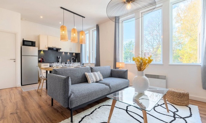Modern, quiet 3-bedroom apartment with parking is located in Marcq-en-Baroeul. Modern, quiet 3-bedroom apartment with parking provides accommodation, featuring Kitchen, Laundry, Parking, among other amenities. This Apartment features Kitchen, Laundry, Parking, to make your stay a comfortable one.