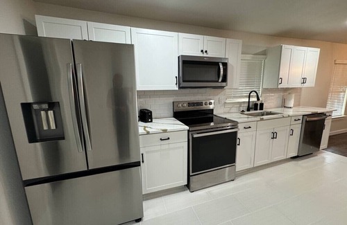 Escape to a stunning home in the lively East Dallas neighborhood of Dallas! An urban retreat close to Downtown Dallas, Farmers Market, Uptown, Deep Ellum, and Lower Greenville. You will have access to an array of restaurants, shops, and entertainment venue! Nearby attractions include Reunion Tower, Klyde Warren Park, AT&T Discovery Center, JFK Memorial Plaza, Design District, and Uptown. This modern contemporary townhouse provides the perfect setting for an unforgettable stay in Dallas! Welcome to your home away from home in Dallas. This newly renovated home is the epitome of modern elegance with sleek floorings and countertops to a massive backyard. The stylish interior all comes together to create a tranquil ambiance for your retreat. The amenities are top-of-the-line and include all new appliances, high-speed WiFi, and Smart TVs. Large windows flood the living space with natural light to create a warm and inviting atmosphere. We offer a keyless, no contact entry via a smart lock. Other amenities include: ✔️ POOL TABLE ✔️ PING PING TABLE ✔️ Free Parking ✔️ High-Speed Wifi ✔️ Smart TVs ✔️ KING BED ✔️ Fully Equipped Kitchen ★Living Room★ Relax on the comfy sectional couch as you watch your favorite TV shows, read a book, play board games and spend memorable moments with your friends and family. Right next to the living room is your very own Pool Table and Ping Pong table that you can enjoy at your leisure. ✔️ 55 inch Smart TV ✔️ Comfy sectional couch ✔️ Coffee table ✔️ POOL TABLE ✔️ PING PING TABLE ★Kitchen & Dining★ The kitchen and dining area are located next to each. The beautiful modern touches along with brand new kitchen appliances make this kitchen a dream for all chefs. There is plenty of space for you to work on your cooking magic and prepare delicious homemade meals. A large dining table is right across the kitchen for you to easily prepare and serve meals. ✔️ Large dining table for 6 ✔️ Utensils, glasses, silverware ✔️ Pots, pans, baking trays ✔️ Coffee Machine (Complimentary Coffee & Tea) ★Sleeping Arrangements★ Three bedrooms can be found in this inviting home. All three bedrooms provide you with comfort and convenience so you may be well rested for your adventures in Dallas. The master bedroom comes with a full king size bed, smart TV, and a private attached bathroom. The second bedroom comes with 2 full sized beds and a work desk. The third bedroom comes with a queen size bed, work desk, and a private entrance. ✔️ 1 KING BED ✔️ 2 Full Beds ✔️ 1 Queen Bed ✔️ 1 Futon Sleeper Sofa ✔️ Queen Air Mattresses Come treat yourself… relax and enjoy the whole townhouse to yourself. This is the ideal place to stay while you explore all of the DFW area! You can access this unit with a keypad on the front door. We will provide the code prior to your check-in. You will have the entire house to yourself. You have access to a private driveway for the house that can accommodate two cars. There is additional street parking as well. We provide the check in instructions and other necessary information 24 hours before your check in time. We are happy to help answer any questions before hand. We also have a list of recommendations in the DFW area, please do not hesitate to ask if you are interested. Feel free to reach out if you need anything at all!Feel free to reach out if you need anything at all!