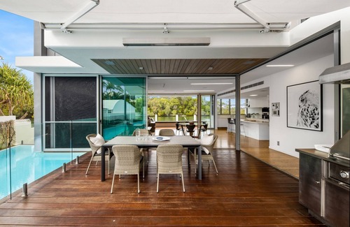 With most of the bedrooms upstairs – including an incredible open-plan master boasting two decks – and additional features including a separate media room, it would be all too easy to arrive for your stay, shut the front door and bask solely in the pleasures of your luxury getaway. But with a desirable location midway between the Hastings Street/Main Beach precinct and ever-popular Gympie Terrace, the proximity to tourist hot spots becomes an irresistible invitation to go exploring.