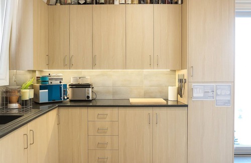 Bus stops for lines 445 (approx. 700 m), 424, 425, and the night line 445 (approx. 1000 m) are within walking distance. The village supermarket is also only 1500 meters away.