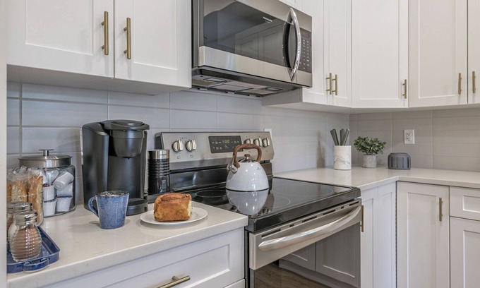 Modern but cozy Scandinavian design perfectly combines style with function in this ground level 2-bedroom, 2 bathroom condo that easily sleeps 4. Unwind in the inviting living room bathed in natural light and 10’ soaring ceilings. Curl up on the sofa and enjoy free WiFi while streaming your favorite program on the 50” Smart TV. While out exploring the city be sure to stock up on the fresh produce, artisan goods and local wines and show off your culinary prowess in the sleek, modern and well-stocked kitchen with stainless steel appliances and a massive island with quartz counters. Room for everyone to gather around with 4 bar stools. The Master bedroom is a relaxing escape with a king platform bed and high-end foam mattress. Store your suitcases away in the walk-in closet and refresh in the master en-suite walk-shower. The second bedroom offers comfortable twin beds that can be arranged into another king bed upon request. Need to do a little work from home? There is a desk and swivel chair. Relax and enjoy a homemade latte or cappuccino from the fully stocked coffee bar.