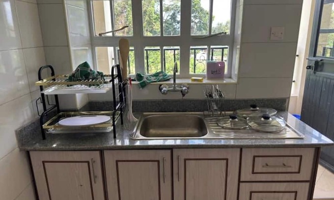 Discover the beauty of Kakamega from this 2-bedroom apartment. The space features 2 queen beds, 2 bathrooms with showers, and amenities like an iron, heating, and WiFi. Nestled in a gorgeous setting, guests can unwind in the serene surroundings and take in the tremendous views. Enjoy your time in Kakamega at our apartment.