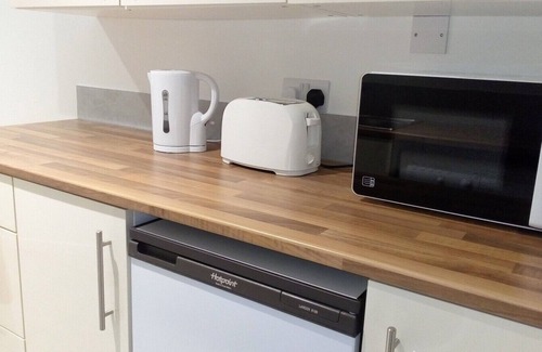 Kitchenette and diner - newly furnished with a microwave, fridge, electric kettle, toaster, toasted sandwich maker, cutlery, crockery, washing machine, ironing board, and iron. Other essentials provided include tea (breakfast and herbal), coffee, hot chocolate, breakfast cereals, biscuits, jams, honey, marmalade, lemon curd, salt, pepper, margarine, bread, and milk. Also provided are liquid soap, washing up liquid, tea towel, washing powder, fabric conditioner and various cleaning detergents and accessories.