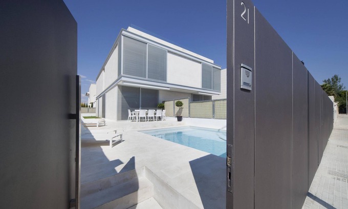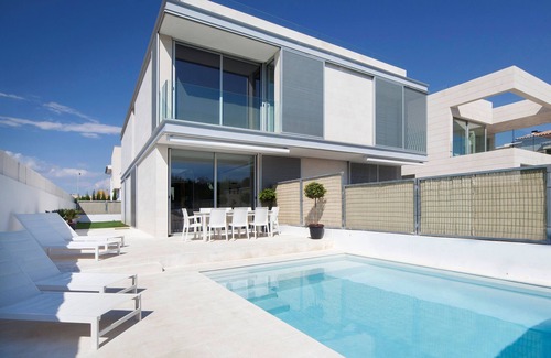 Modern semi-detached two-storey villa with private pool is located in Playa de Palma. Modern semi-detached two-storey villa with private pool provides accommodation, featuring Pool, TV, View, among other amenities. This Villa features Pool, TV, View, to make your stay a comfortable one.