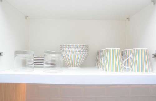 BathroomPrivate bathroom, Shower, Toilet paper, Free toiletries, TowelsMedia & TechnologyTV, Flat-screen TVGeneralTrash cans, Air conditioning, Iron, Ironing facilities, Key card accessKitchenKitchenware, Microwave, Electric kettle, Dishwasher, Refrigerator, Kitchen, Stovetop, KitchenetteLiving AreaDeskBedroomLinens, Wardrobe or closetFood & DrinkBottle of water |