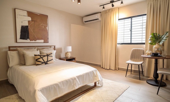 This modern studio offers a cozy and tranquil escape in the heart of Gazcue. Equipped with a comfortable double bed, a private kitchen, a spacious closet, and a well-appointed bathroom, it’s designed for both comfort and convenience. The apartment also features a dining table for two, fast Wi-Fi, and a Smart TV, making it perfect for relaxing or working remotely. Whether you're a couple, a solo traveler, or visiting for a procedure at the nearby INCIPLER clinic, this studio provides the ideal home base.