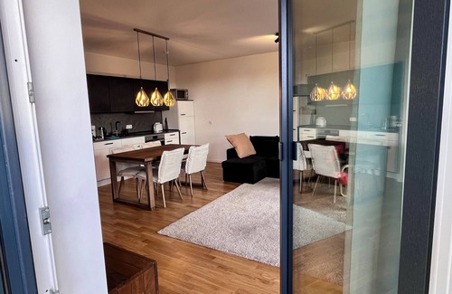 The apartment has a beautiful bedroom where you can wake up to the rising sun or sleep in at the weekend with electric blinds. The living room/kitchen invites you to cook, sit comfortably on the sofa or you can watch the stars on the balcony! Thanks to the ideal location, you can be at Berlin Airport in just a few minutes, or in Berlin city center in half an hour by car. The Schönefeld S-Bahn station is within walking distance.
