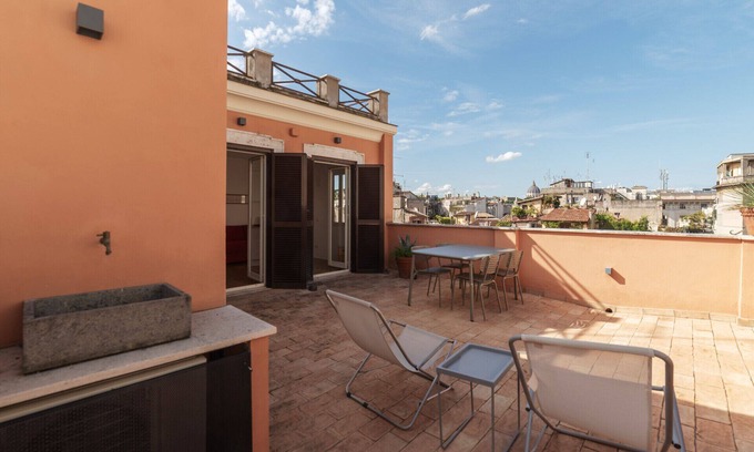 Modern studio with panoramic terrace, by Campo de’ Fiori - Wifi, Independent Heating, A/C has 1 Bedroom , 1 Bathroom, and max occupancy of 2 people. The minimum rental for this property is 1 nights, but this can change depending on the season you plan on staying. Previous guests have given good rated it, and VRBO labeled it a top-rated Apartment because of the excellent services rendered by the owner or manager of this Apartment, and has consistently provided great experiences for their guests. Most families or guests that use it recommend it to their friends and some of them are repeat guests. Apartment has a friendly neighborhood, and the Rione VI Parione has interesting places to visit. If you want to learn more about the Apartment in Rione VI Parione, such as places to visit and things to do nearby, you can check below to learn more.