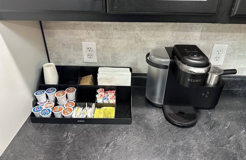 -Kitchen Fully Equipped, Keurig , blender, Toaster, electric stove, ice machine, Microwave, Dishwasher and kitchen island with two bar stools..