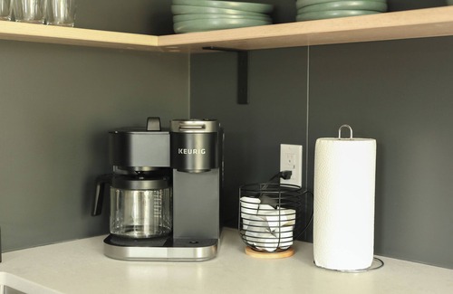 ~ Microwave ~ Stove ~ Coffee maker ~ Refrigerator ~ Glasses ~ Silverware ~ Pots and Pans ~ Kitchen essentials