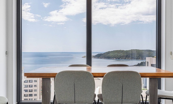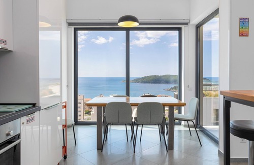 The new 3BR apartment is on the 6th floor and delivers an unique panorama view of the Adriatic Sea with incredible interior design, this fully furnished flat with 2,5 bath rooms offers comfort and relaxation to you for up to 10 persons!
