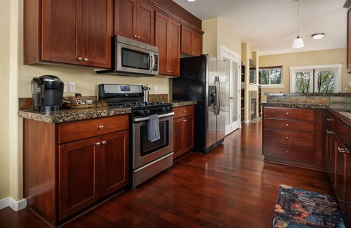 Step inside to a welcoming foyer that leads to the converted garage lounge, a casual and fun-filled space perfect for unwinding after a day of adventures. Challenge your crew to a game of billiards, enjoy drinks at the bar, or relax on the back deck with plenty of group seating. Please note: while inviting, this bonus space does not have dedicated heating or cooling.