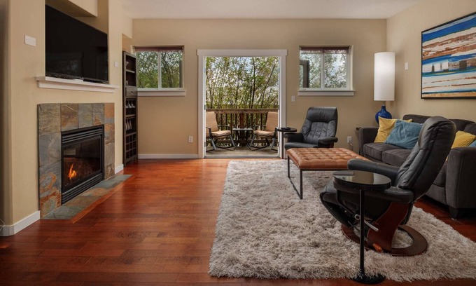 ★ Open-concept living with fireplace and balcony