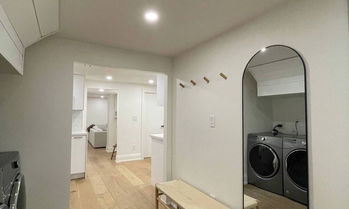 Welcome to our newly renovated basement unit with modern finishes. As a design-loving family, we've curated a cozy space with soft neutrals and natural elements to make you feel right at home.