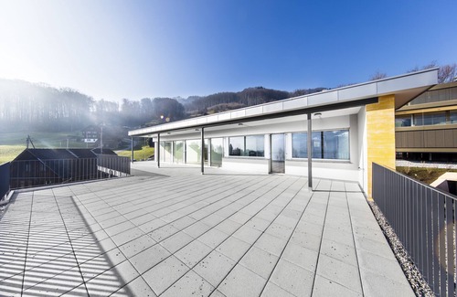 The great villa in Wilen is a new building in the middle of the Swiss village Wilen. The outer part of the building has a pleasant yellow color, just like sun yellow. The view of the mountains and the Sarnensee from the villa is breathtaking. It's exciting to see the sun rise behind the mountains in the morning and set on the other side of the villa in the evening.