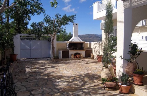 ^ THE Tree-House is ideally situated within walking distance of the town centre and the harbour (10 min) through the Ermioni "old town". It's a spotless house with great sea view from both sides since it is situated at the top of the Ermioni hill (Ermioni village is a peninsula). It is in a quiet area very close to the forest and only 150 m. from the sea.