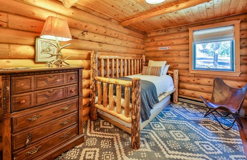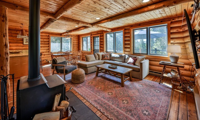 Modern & Vintage Log Cabin on an acre w/private hot tub, hiking/biking is located in Sunset Ridge. Modern & Vintage Log Cabin on an acre w/private hot tub, hiking/biking provides accommodation, featuring Balcony/Terrace, Bedding/Linens, Child Friendly, among other amenities. This Cabin features Balcony/Terrace, Bedding/Linens, Child Friendly, to make your stay a comfortable one.