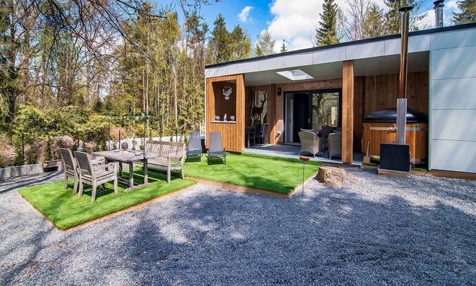 Best-rates for the Modern Wellness Stay, Érezée starts from $312 per night with includes Balcony/Terrace, Sports/Activities, Wellness Facilities, Barbecue/Outdoor Cooking, Internet, Laundry, Parking, Security/Safety, Pet Friendly, TV, Child Friendly, Kitchen, Spa, Fireplace/Heating, Hot Tub With all other amenities included. Treehouse Rentals offers a wide range of treehouses, forest homes, cabins, and off-grid retreats, ensuring each traveler discovers their ideal nature getaway—be it a family adventure, a peaceful retreat, or a pet-friendly retreat with the whole group.