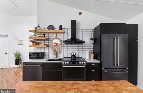 - Fully-equipped kitchen with custom cabinetry, stove/oven, microwave, refrigerator and dishwasher