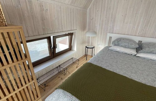 As you drive through the scenic countryside, a sense of tranquility washes over you. The road winds through rolling hills and lush greenery, leading you to MODOS_LOFT_HOUSE, a charming retreat nestled in the heart of nature.