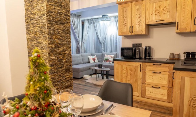Modrzewiowa Ostoja II offers accommodations in Kluszkowce, 10 miles from Niedzica Castle and 17 miles from Bania Thermal Baths. This property offers access to a balcony, free private parking, and free Wifi. The accommodation offers a shared kitchen and a mini-market for guests. Offering a terrace and mountain views, the villa includes 2 bedrooms, a living room, satellite flat-screen TV, an equipped kitchen, and 1 bathroom with a shower. Towels and bed linen are offered in the villa. There's also a seating area and a fireplace. For guests with children, the villa features outdoor play equipment. Guests at Modrzewiowa Ostoja II can enjoy skiing and cycling nearby, or make the most of the garden. Treetop Walk is 20 miles from the accommodation, while Zakopane Railway Station is 26 miles from the property. The nearest airport is Poprad-Tatry Airport, 43 miles from Modrzewiowa Ostoja II.