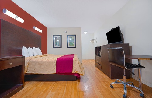 Timezone: America/Los_Angeles With a stay at Red Roof Inn Mojave in Mojave, you'll be a 4-minute walk from Mojave East Park and within a 5-minute drive of Mojave Chamber of Commerce. This hotel is 24.7 mi (39.8 km) from Edwards Air Force Base and 31.8 mi (51.2 km) from Lancaster National Soccer Center. Make yourself at home in one of the 35 air-conditioned rooms featuring flat-screen televisions. Complimentary wireless Internet access keeps you connected, and cable programming is available for your entertainment. Bathrooms have shower/tub combinations and complimentary toiletries. Conveniences include phones with free local calls, and housekeeping is provided daily. This hotel has 2 floors in 1 building and offers designated smoking areas. Featured amenities include a 24-hour front desk, multilingual staff, and an elevator. Free self parking is available onsite.