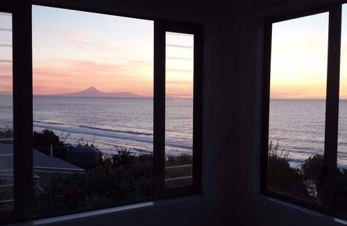 Fabulous South and West views over Mokau Beach all the way past White Cliffs to Mt Taranaki, which our builder claims has the "Best view in Mokau". Stroll on spacious, wild and exhilarating black sand beaches with bleached driftwood and big surf. Warm and very cozy whatever the season and love the Sundowners ! You really won't want to go home.