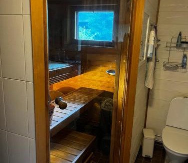 BathroomBathtub or shower, Body soap, Private bathroom, Shower, Toilet paper, Conditioner, Shampoo, Hairdryer, Bidet, Toilet, TowelsMedia & TechnologyFlat-screen TV, TV, Video games, Streaming service (like Netflix), Blu-ray player, Game console - Xbox 360, Mobile hotspot device, Game consoleGeneralTrash cans, Private entrance, Key access, Air conditioning, Heating, Hardwood or parquet floors, Smoke AlarmKitchenKitchenware, Cleaning products, Microwave, Oven, Electric kettle, Toaster, Stovetop, Refrigerator, Kitchen, Coffee machine, Wine glasses, Kitchenette, Washing machineOutdoorsTerrace, Patio, Balcony, Outdoor furnitureLiving AreaDesk, Sofa, Fireplace, Dining areaActivitiesSaunaBedroomLinens, Wardrobe or closetViewLake viewBuilding CharacteristicsDetachedRoom AmenitiesClothes rack, Drying rack for clothing, Sofa bed, Non-feather pillow, Socket near the bedEntertainment & Family ServicesBoard games/puzzlesAccessibilityShower chairFood & DrinkBottle of waterInternetGame console - Xbox One |