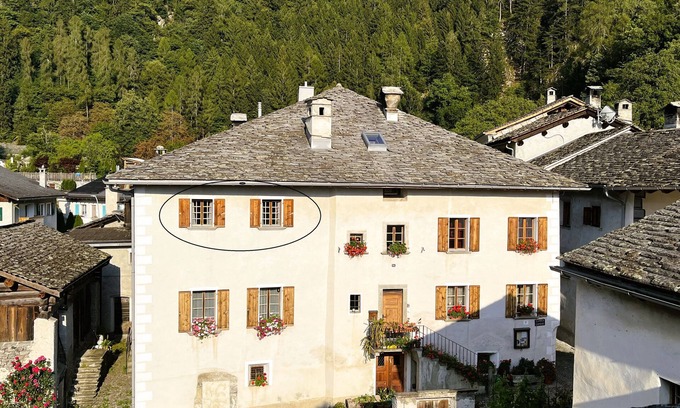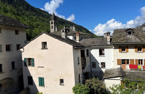 You would like to enjoy a quiet and relaxing stay. Then we recommend our one-room flat inside: The one-room flat on the 1st floor is furnished in a rustic, cosy style in an old patrician parlour made of wood. It has a double bed and a pull-out couch for 2 people, a cosy corner with a wooden table for eating or playing games. A simple fitted kitchen with fridge, cooker with oven and kettle is at your disposal. The shower/WC with towels is located on the same floor next to the studio flat and was renovated in 2021. House and outdoor area: You live in an old patrician house, which was built in the centre of the village of Bondo in 1667 and has been a listed building since 1976. A chair and table can be provided in the garden on request. There is a car park within a 2-minute walk. Surroundings: The village of Bondo is located in the lower part of the Bergell valley and the area is rural, a starting point for short and longer hikes from spring to autumn in the surrounding area or other valleys. Bike tours can be undertaken in the valley and in nearby Valchiavenna as far as Lake Como or in the Engadine, 20 kilometres away. Shopping facilities are available in the village shop and in the next village. There are public transport bus connections to Chiavenna (Italy) and to St. Moritz Engadin. Further: Board games / books available on request.