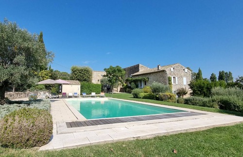 Child-friendly, air-conditioned villa with private, heatable swimming pool (secured with an electric cover), 3ha private grounds, overlooking vineyards and Mont Ventoux, within walking distance of the charming Saint-Restitut with its cobbled streets, chapel, restaurants and weekly market on Saturday. Pets are allowed (on request).