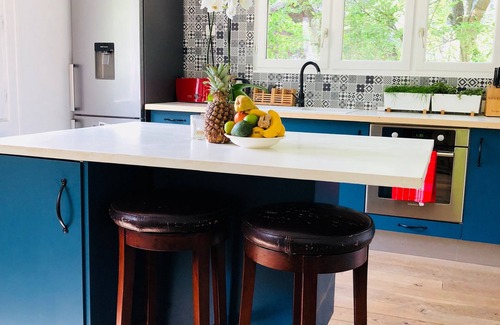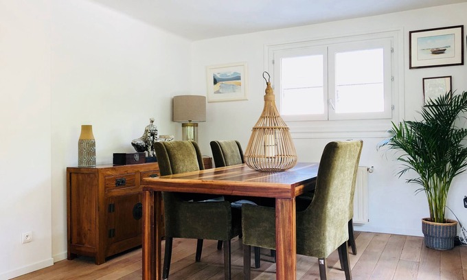 Our beautiful home is situated in a beautiful quiet family friendly neighbourhood just six minutes drive to central Chamonix, an easy bike ride to the valley center with direct bus access outside the house. Easy Walking distance to exceptional Mountain trails either side and a five minute drive to slopes in chamonix and Les Houches. our home is perfect for groups or families and includes large entertaining garden, bbq, contemporary style rumpus entertainment room, large modern kitchen and two bathrooms. A gem in a highly sought after location.