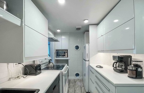 This is a great place to bring your Best Couple, your Bestie, or maybe just yourself for an outstanding beach weekend in Montauk. This super-contemporary home is the perfect summer walk-to-beach beach getaway. New kitchen with all the appliances and conveniences (blender, coffee maker, bean grinder, etc). The kitchen door opens to a quiet, evergreen-lined backyard with grill and outdoor umbrella-shaded dining table; AC-cooled, comfy, cozy birch-paneled bedrooms with queen-sized beds and designer lighting; A spacious front deck accessible from the wide sliding french-doors in the living room that features a smart LG 55" OLED screen. Need to squeeze in a Zoom meet? This contemporary rethink of the traditional Montauk surf shack has the tech amenities including hi-speed, reliable, fiber-optic wifi access (installed 2022). As always: Book Early/Book Often!