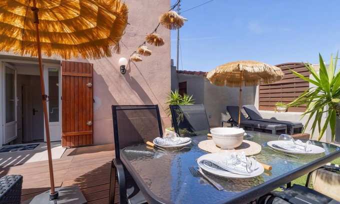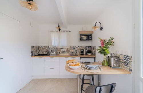 This charming 27 m² flat with air conditioning and Wi-Fi can accommodate up to 2 people. Located on the ground floor, it comprises an attractive 9 m² living room, a fully equipped kitchen, a lovely bedroom, a bathroom (with shower) and a 45 m² garden. Cleaning is included in the rental price and 4-star hotel-quality linen is provided (sheets, towels, tea towels). Your bed will be made up on arrival.
