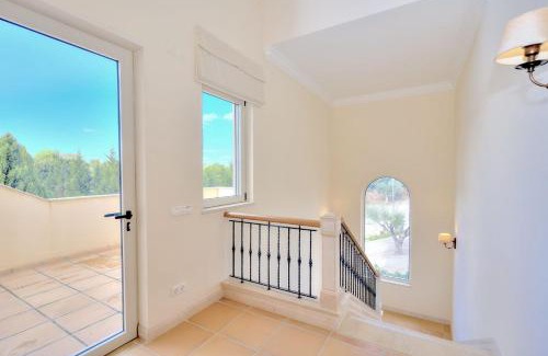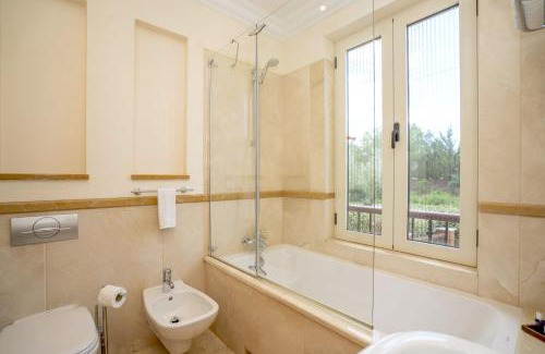 14 miles from Tavira Island in Vila Nova De Cacela, Monte Rei 2 bed linked villa offers accommodations with access to a sauna. Offering a garden, the property is located within a few steps of Monte Rei Golf Course. The villa features both free Wifi and free private parking. Offering direct access to a balcony with garden views, the spacious air-conditioned villa consists of 2 bedrooms. Featuring a terrace with pool views, this villa also includes a satellite TV, a well-equipped kitchen with a dishwasher, an oven, and a microwave, as well as 3 bathrooms with a bath and slippers. The property has an outdoor dining area. Quinta de Cima Golf Course is 5.6 miles from the villa, while Quinta da Ria Golf Course is 6.2 miles from the property. Faro Airport is 38 miles away.
