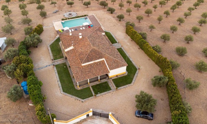 Featuring a garden, Monte Ribeira de Mures provides accommodations in Évora. Guests can go for a swim in the private pool. There's a sun terrace and guests can use free Wifi and free private parking. Opening onto a patio with pool views, the air-conditioned vacation home consists of 4 bedrooms. Providing a balcony with mountain views, this vacation home also offers a flat-screen TV, a well-equipped kitchen with a dishwasher, an oven, and a microwave, as well as 3 bathrooms with a bidet and a hair dryer. There's also a seating area and a fireplace. Guests can make the most of the warm weather with the property's barbecue facilities. The vacation home has a picnic area where you can spend the day outdoors. Monsaraz Castle is 26 miles from the vacation home, while Ducal Palace of Vila Viçosa is 14 miles away. The nearest airport is Badajoz Airport, 40 miles from Monte Ribeira de Mures.