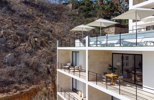 Set in the natural seclusion of Cabo San Lucas' idyllic landscape, this luxury hotel residence is serenely ensconced on top of a cliff. The verdant landscape of age-old trees and dense thicket cradles the spaces in complete privacy, providing plenty of opportunities to spend time together with friends and family. The stillness is only accompanied by the gentle lapping of the ocean waves and birds singing on the treetops. The Montemar experience is for those who seek refuge in nature!