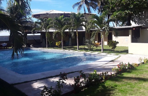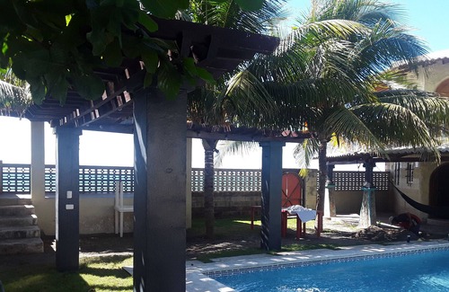 nice property in front of the beach. perfect getaway home to relax. beautiful swimming pool with wet deck for kids or just to be in a shallow area. palms trees around. showers and a bathroom in pool area. very convenience 25min from airport. 10min from puerto de la libertad, 40 min from San Salvador. (capital) very familiar and friendly place to relax, enjoy with ocean nature. Right on front beach