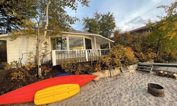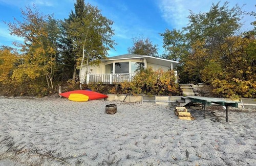 Let the sound of the waves lullaby you to sleep in this beach front cabin. Great place to have a get away with friends or family and spend some time on the shores of Moose lake in Bonnyville, Alberta. Have a drink cuddle up to your loved one and listen to some music while watching the beautiful sunsets on your own porch. Close to amenities such as hiking/off road trails, boat launch, golf course and the town of Bonnyville is just a short 6 minute drive away. The cabin sleeps 8 people comfortably on 4 queen beds. With space in the yard for parking or an RV. It has running water with private sewer and contains all the household necessities required for a stay on the beach including dishes, linens, bbq, fire pit, etc. Turn up the Campfire and Book today the lake is calling you!