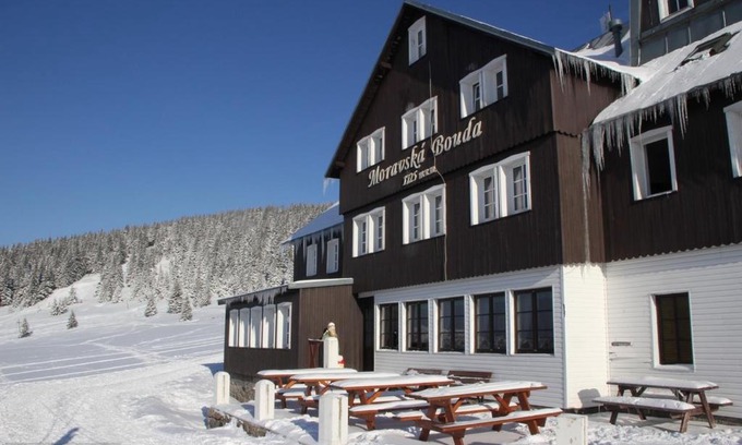 Offering mountain views, Moravská Bouda in Špindlerův Mlýn features accommodations and a garden. Private parking is available on site. The accommodation offers free Wifi throughout the property, as well as a terrace and a traditional restaurant. At the guest house, units are fitted with a wardrobe, a flat-screen TV, a private bathroom, bed linen, and towels. At the guest house, all units are allergy-free and soundproof. The rooms are equipped with heating facilities. As an added convenience, the guest house offers packed lunches for guests to bring on excursions and other trips off-property. For guests with children, Moravská Bouda provides an indoor play area, outdoor play equipment, and a kids' club. Skiing and cycling can be enjoyed nearby, while ski-to-door access and ski storage space are also available on-site. Bus Stop Strážné is 17 miles from the accommodation. Pardubice Airport is 75 miles from the property.