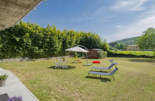 Beautiful, comfortable apartment house "More e Lamponi". 2 km from the centre of Vecchiano, 10 km from the sea. Private: park 400 m2 (fenced). Barbecue, children's playground, parking (for 2 cars) at the house. Grocery 500 m, supermarket 2 km, restaurant 3 km, bar 500 m, bus stop 10 m, railway station 6 km, sandy beach "Marina di Vecchiano" 10 km, park "San Rossore" 10 km, thermal baths "San Giuliano" 6 km. Nearby attractions: Pisa 10 km, Lucca 13 km, Viareggio 20 km, Marina di Pisa 20 km, Marina di Vecchiano 10 km. Please note: baby equipment (included). The owner lives on the same property.