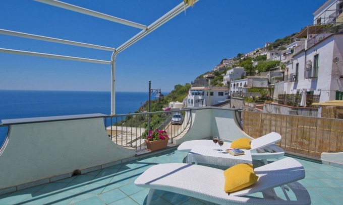 The property includes a private garage with space for two medium-sized cars or a small van, an added luxury on the often narrow and crowded Amalfi Coast roads.
