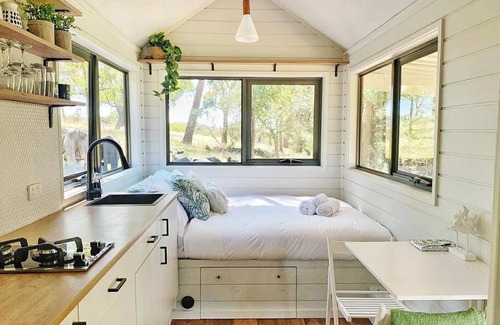 Mornington Peninsula Tiny House - Tiny Stays offers accommodations in Red Hill, 3.9 miles from Arthurs Seat Eagle and 8.8 miles from Rosebud Country Club. This property offers access to a patio and free private parking. On clear days, guests can head outside to enjoy the vacation home's outdoor fireplace. The vacation home is composed of 1 separate bedroom, a fully equipped kitchen with a fridge and a stovetop, and 1 bathroom. Guests can enjoy a meal on an outdoor dining area while overlooking the sea views. For added privacy, the accommodation features a private entrance. Guests can also relax in the garden. Martha Cove Harbour is 9.1 miles from the vacation home, while Moonah Links Golf Club is 10 miles away. Essendon Fields Airport is 60 miles from the property.