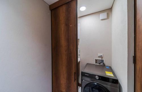 BathroomBathtub or shower, Hairdryer, Toilet, Private bathroom, Towels/Sheets (extra fee), Conditioner, Free toiletries, Towels, Body soap, Toilet paper, Shampoo, ShowerGeneralIroning facilities, Private entrance, Safe, Key card access, Iron, Trash cansMedia & TechnologyFlat-screen TV, TVKitchenCleaning products, Stovetop, Kitchenware, Oven, Coffee machine, Dining table, Microwave, Kitchen, Refrigerator, Kitchenette, Washing machineOutdoorsBalconyLiving AreaDining area, Sitting area, Sofa, DeskBedroomLinens, Walk-in closet, Wardrobe or closetViewCity view, ViewAccessibilityUpper floors accessible by stairs only, Hearing accessible, Upper floors accessible by elevator, Accessible by elevatorBuilding CharacteristicsPrivate apartment in building, DetachedRoom AmenitiesSofa bed, Socket near the bed, Non-feather pillowFood & DrinkBottle of water |